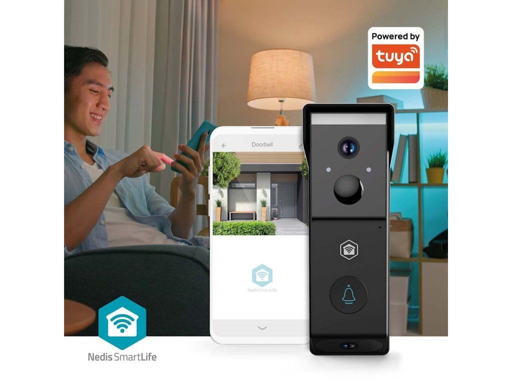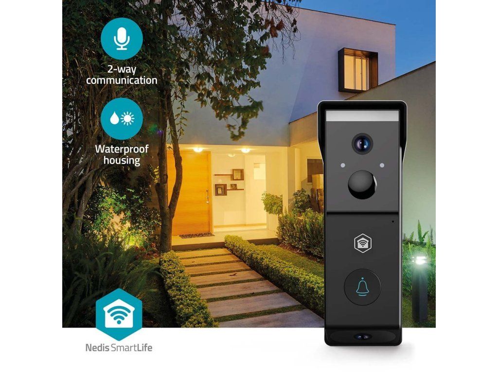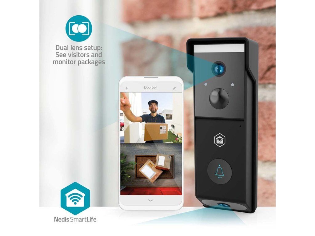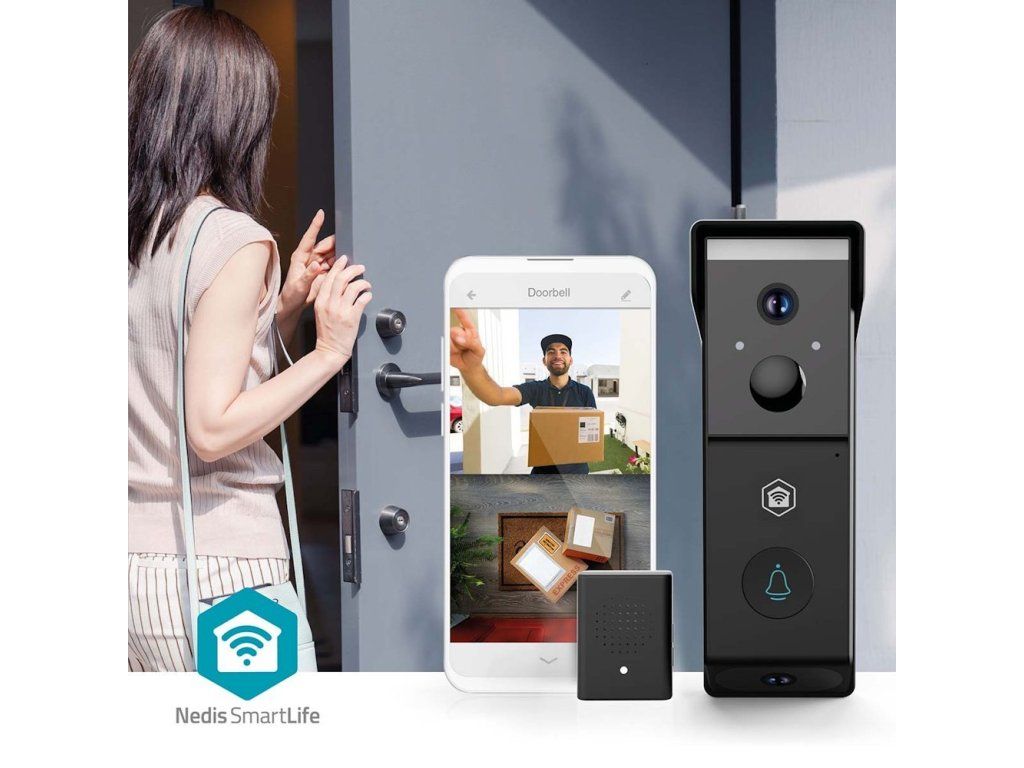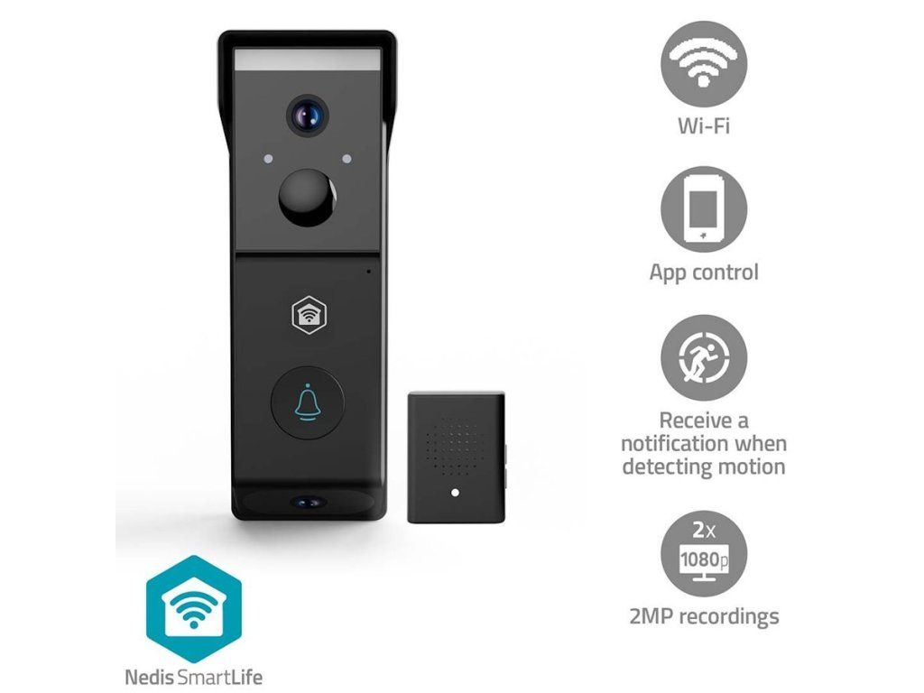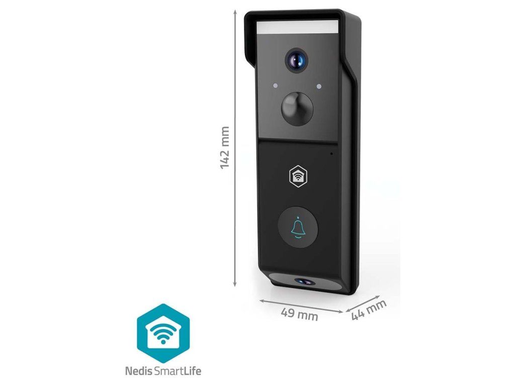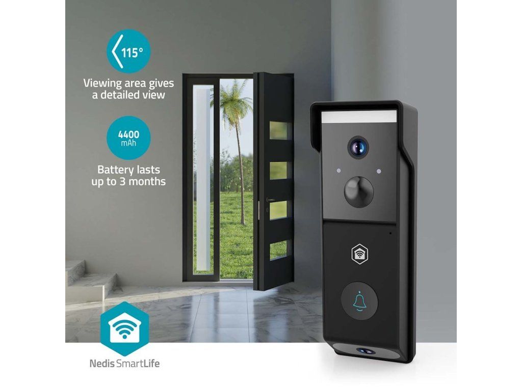 NEDIS Wi-Fi chytrý dveřní videotelefon/ 2x 1920x1080/ 4Mpix/ napájení z baterie/ IP54/ snímač pohybu/ noční vidění/ čern