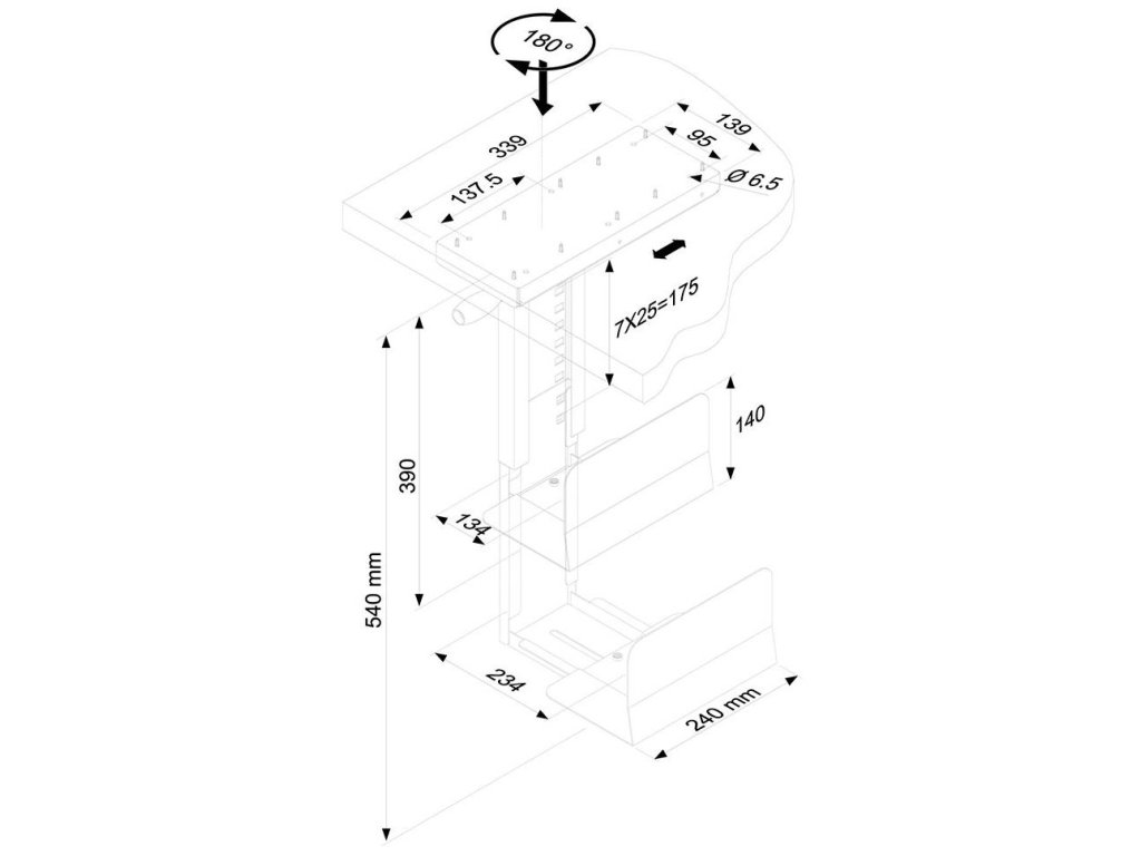Neomounts CPU-D250BLACKOtočný držák pro vertikální montáž počítače pod stůl. Nabízí snadno nastavitelnou šířku a výšku pro většinu stolních a věžových počítačů. Maximální nosnost je 30 kg. Držák lze otáčet o 180°. Veškerý instalační materiál je součástí výrobku.