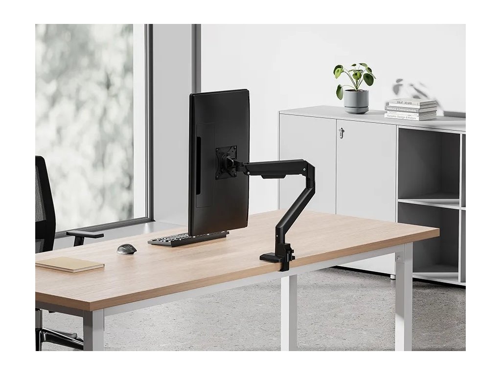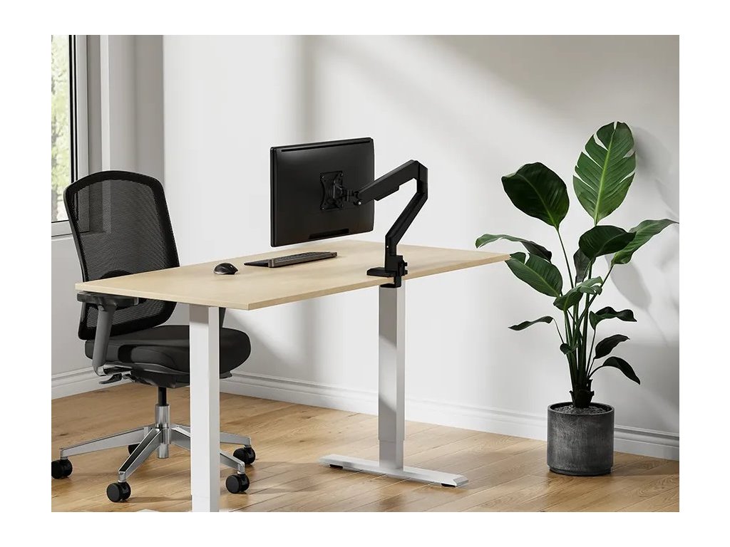 Neomounts DS70-250BL1Plně pohyblivý stolní držák pro plochý nebo zakřivený monitor s úhlopříčkou 17" až 35" a maximální hmotností 9 kg (8 kg pro zakřivený monitor). Všestranná technologie naklápění, otáčení a rotace umožňuje vytvořit optimální pozorovací úhel. Držák má nastavitelnou výšku 21,5–49,5 cm, hloubku 7–52,5 cm a je vhodný pro obrazovky, které odpovídají vzoru otvorů VESA 75 × 75 až 100 × 100 mm. Potěší také systém pro úhledné vedení kabelů. Balení obsahuje stolní svorku i průchodku.