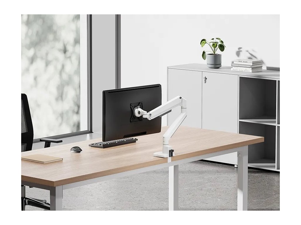 Neomounts DS70-250WH1Plně pohyblivý stolní držák pro plochý nebo zakřivený monitor s úhlopříčkou 17" až 35" a maximální hmotností 9 kg (8 kg pro zakřivený monitor). Všestranná technologie naklápění, otáčení a rotace umožňuje vytvořit optimální pozorovací úhel. Držák má nastavitelnou výšku 21,5–49,5 cm, hloubku 7–52,5 cm a je vhodný pro obrazovky, které odpovídají vzoru otvorů VESA 75 × 75 až 100 × 100 mm. Potěší také systém pro úhledné vedení kabelů. Balení obsahuje stolní svorku i průchodku.