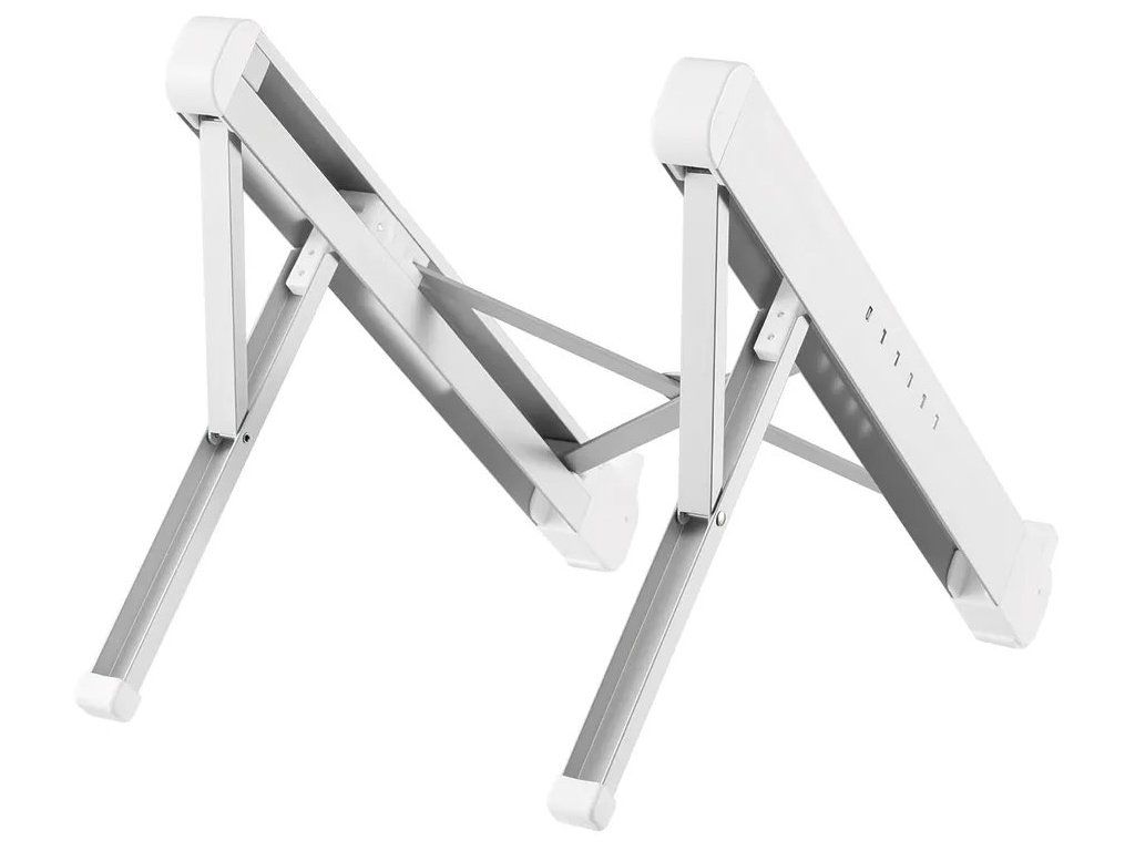 Neomounts NSLS010Univerzální stojan pro tablety a notebooky s úhlopříčkou od 11" do 17" a maximální nosností 5 kg. Stojan nabízí 6 různých výškových poloh a důmyslnou skládací konstrukci. Díky lehkému a kompaktnímu provedení je ideální k tomu, abyste si jej mohli vzít kamkoli s sebou. Otevřené uspořádání zajišťuje dobré větrání notebooku, bezpečnostní zarážka se stará o pevné umístění.
