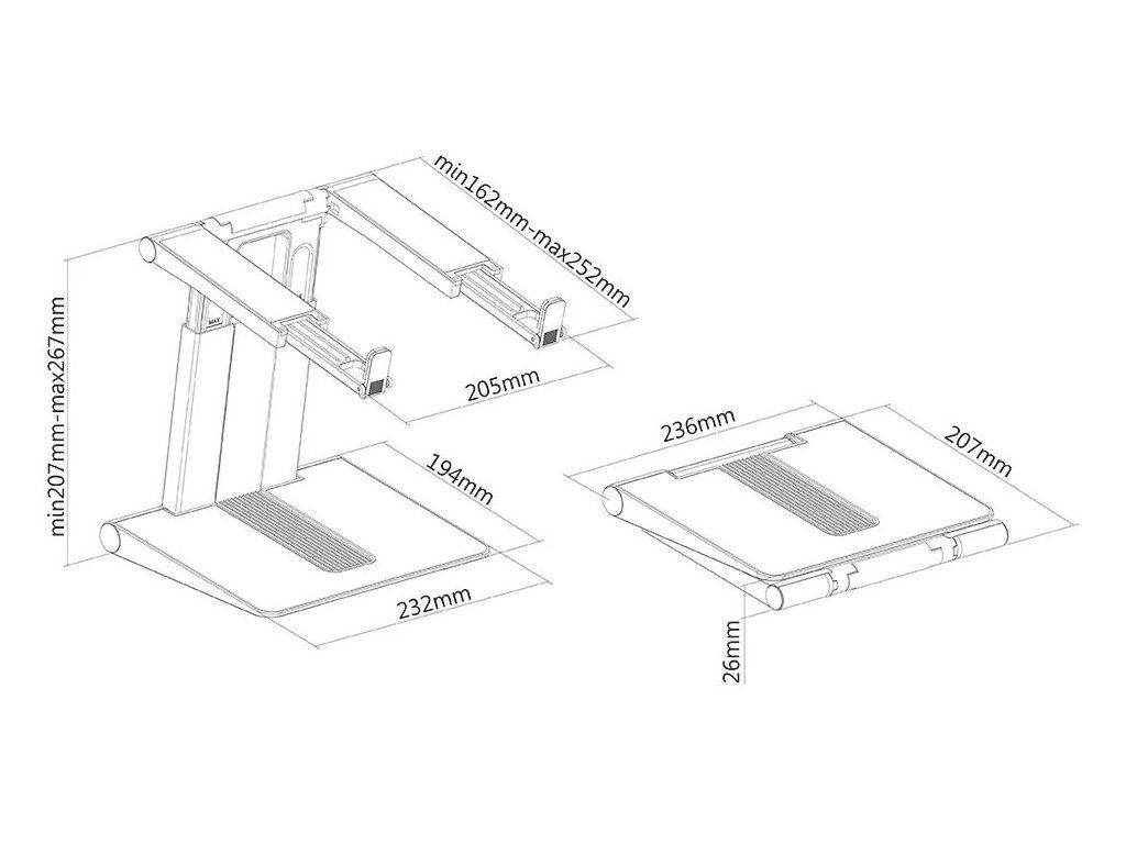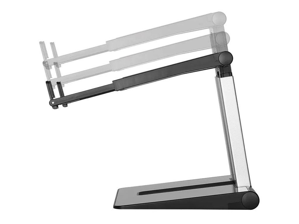 Neomounts NSLS200Stojan pro notebooky s úhlopříčkou od 10" do 17" a maximální nosností 5 kg. Stojan nabízí 7 různých výškových poloh, nastavení hloubky a důmyslnou skládací konstrukci. Díky lehkému a kompaktnímu provedení je ideální k tomu, abyste si jej mohli vzít kamkoli s sebou. Otevřený design zajišťuje dobré větrání, protiskluzové silikonové podložky a bezpečnostní zarážka se starají o pevné umístění.