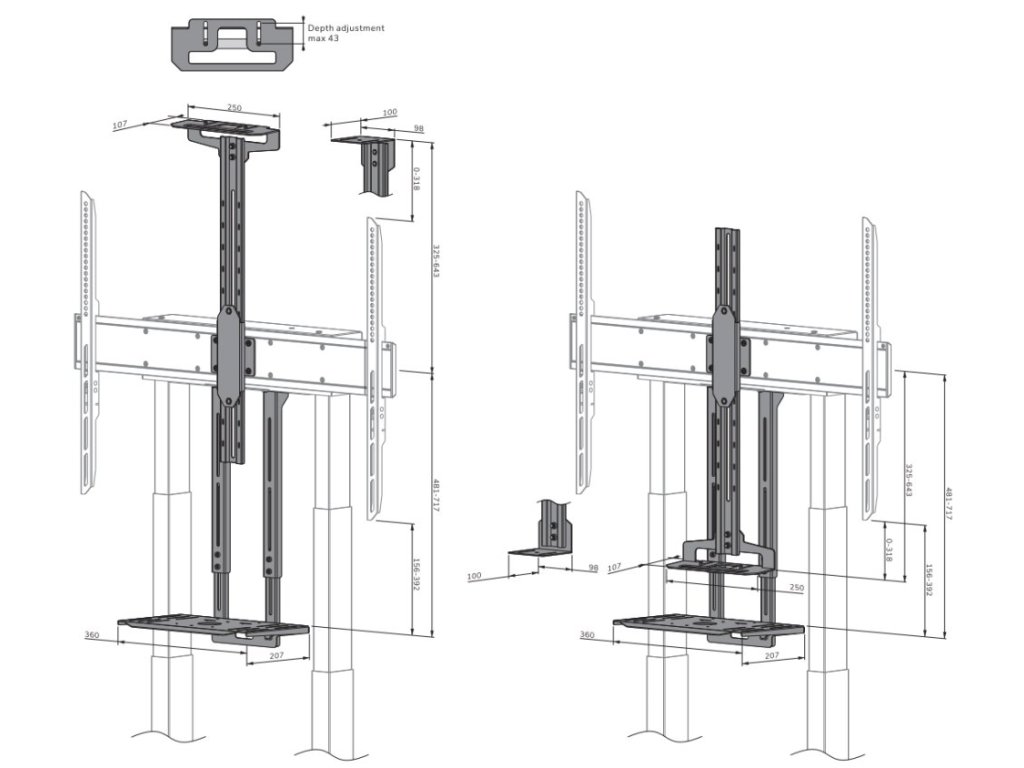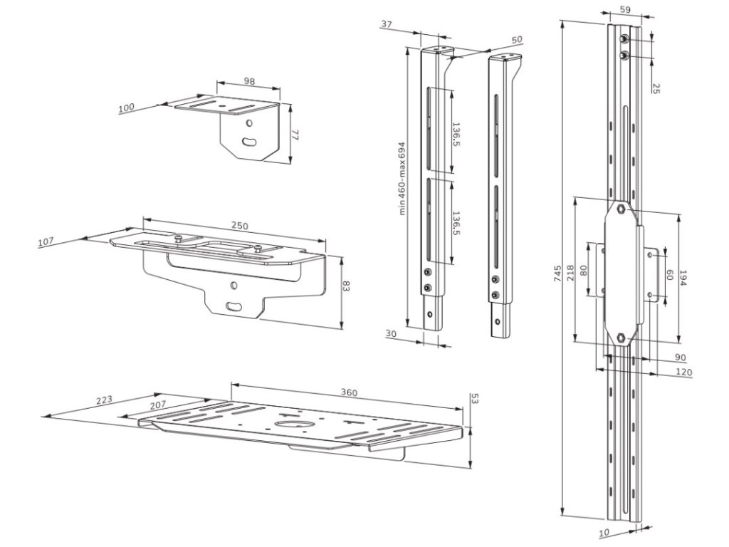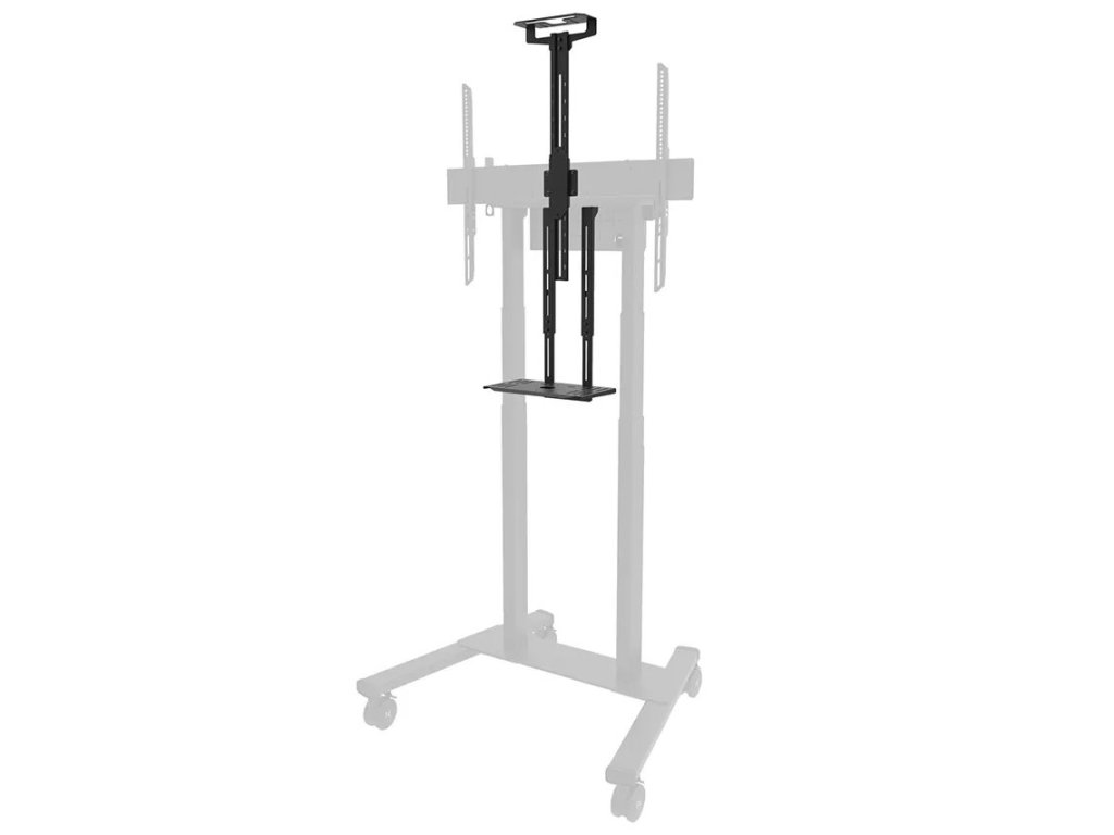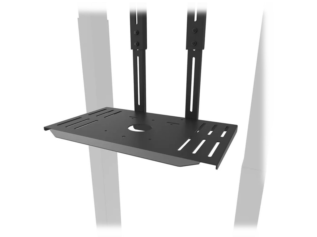 Neomounts AV1-875BLPolice o šířce 36 cm a držák webkamery pro mobilní stojan FL55-875BL1 a nástěnný držák WL55-875BL1. Univerzální polici lze instalovat na přední i zadní stranu držáku. Balení obsahuje také adaptér pro zařízení Bose VB1 a VB-S.