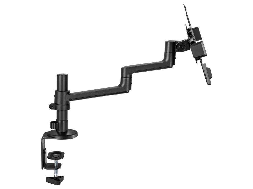 Neomounts DS20-425BL1Flexibilní stolní držák pro notebooky s úhlopříčkou 11,6–17,3" a nosností až 5 kg. Držák je manuálně výškově nastavitelný v rozmezí od 24,5 do 38,8 cm. Navíc je i hloubkově nastavitelný v rozmezí od 16,2 do 49,4 cm. Díky krátkému hornímu rameni T-Rex je při umístění v blízkosti stěny nutná pouze minimální hloubka. Potěší také systém pro úhledné vedení kabelů. Balení obsahuje stolní svorku i průchodku.