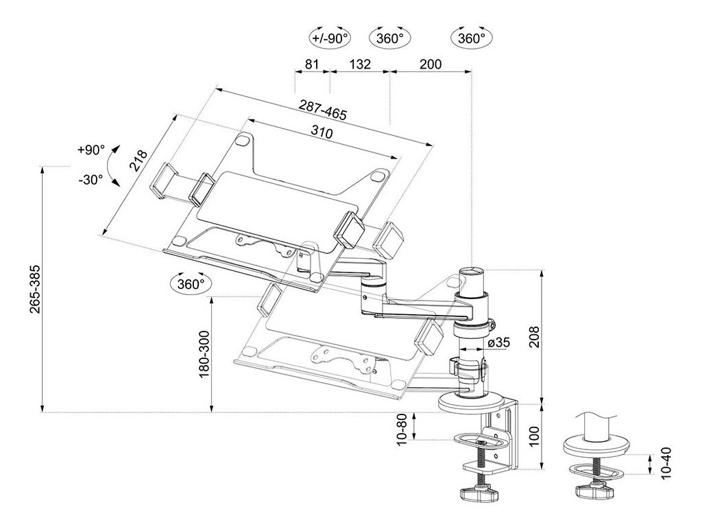 Neomounts DS20-425BL1 /Držák notebooku/na stůl/11,6-17,3"/svorka+průchodka/3čepy/nosn.5kg/černý