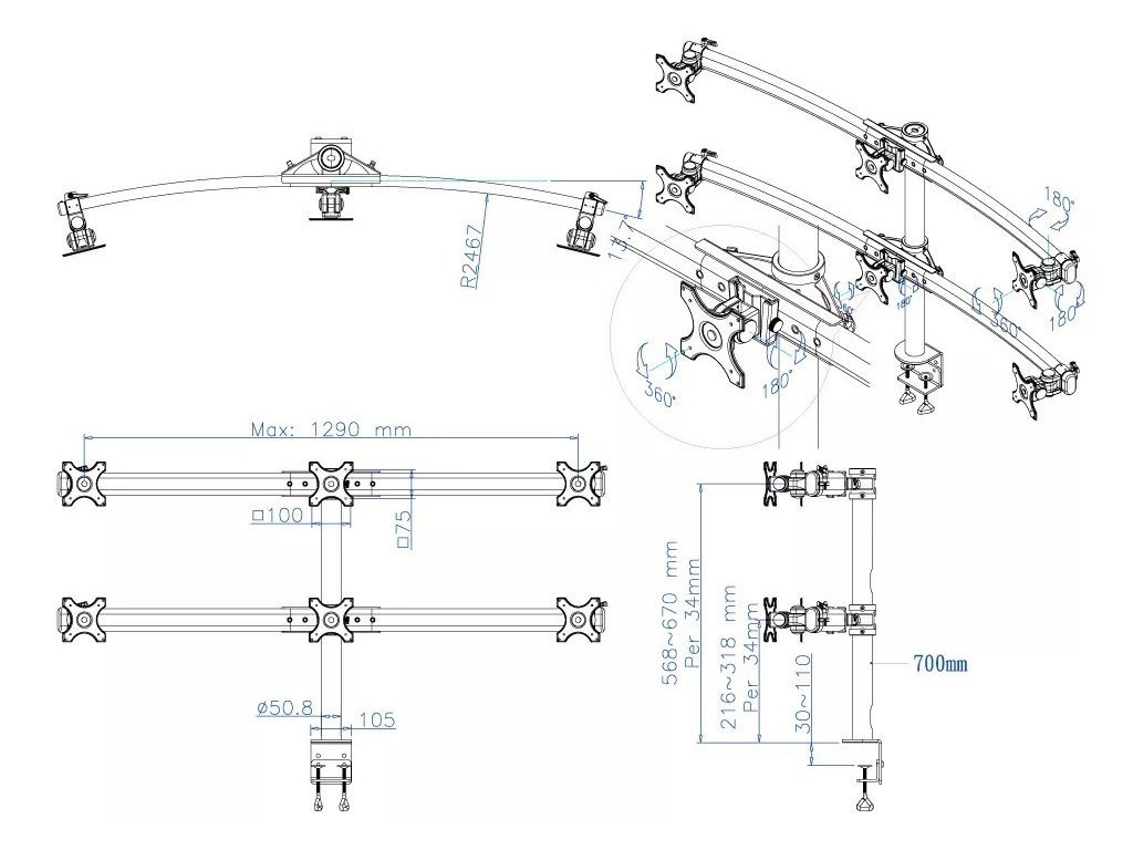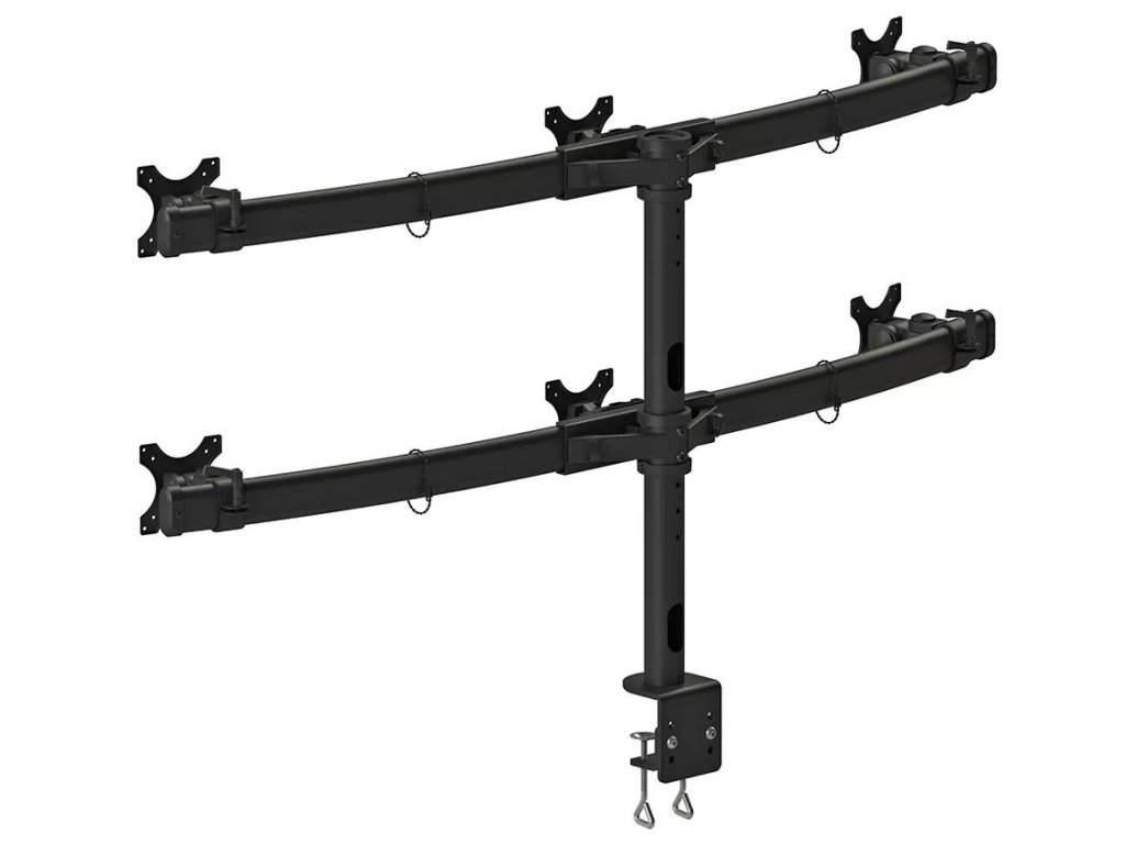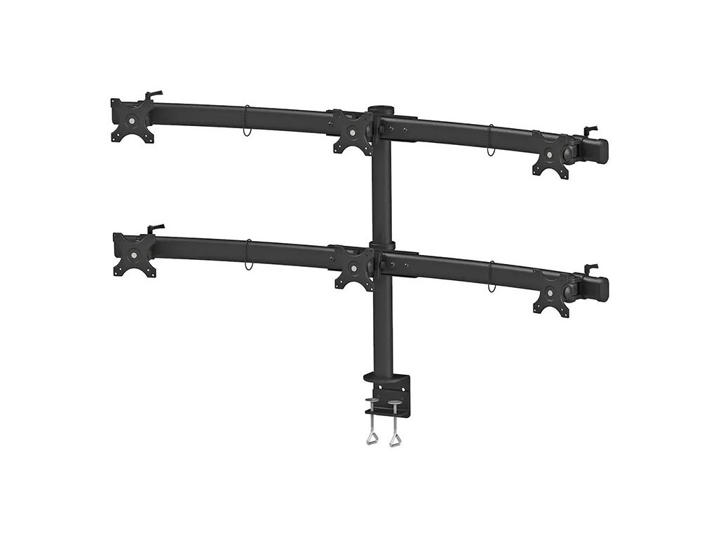 - Plně pohyblivý stolní držák pro 6 plochých obrazovek 19"–27"