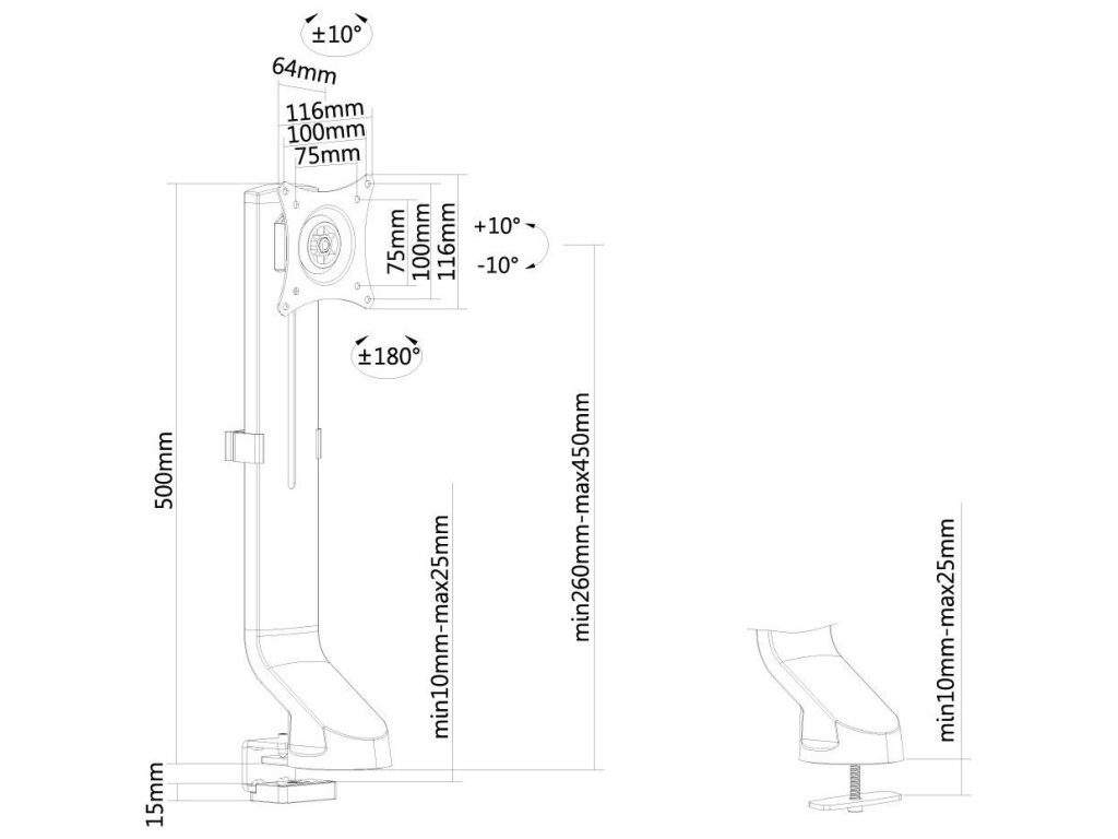 - Kompatibilní s VESA standardem 75 × 75 a 100 × 100 mm