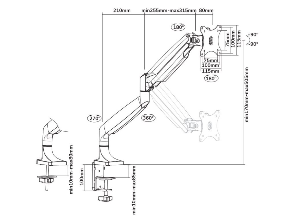 - Plně pohyblivý stolní držák pro plochou obrazovku od 10"–32"