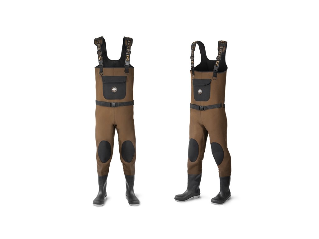 Při zimním rybaření je třeba myslet hlavně na tepelný komfort. Ten dokážou ideálním způsobem zajistit neoprenové prsačky Delphin ORAVA. Vyznačují se kvalitním provedením a elegantním designem. Každé prošití a namáhané spoje jsou precizně ošetřeny, aby zabránily nechtěnému prosakování. Hnědá barva neoprenu zamezí vzniku velkého množství viditelných skvrn ze slizu a dalších různých nečistot. Neodmyslitelným pomocníkem je neoprenová kapsa na přední straně prsaček, kde si můžete odložit například povolení k rybolovu. Nemusíte se bát ani kleknutí na zem, protože v kolenní části jsou prsačky zpevněny dvojitou vrstvou neoprenu. Nastavitelné popruhy na ramena jsou také vybaveny neoprenovou výstelkou, aby bylo nošení prsaček během celodenních vycházek pohodlné a ramena méně namáhána. Pod šlemi se také nacházejí dva plastové kroužky, na které lze pomocí joja, nebo karabiny uchytit různé pomůcky, jako například pean nebo metr. Součástí balení je i brodící pásek, který zamezí natečení vody do prsaček při nechtěném uklouznutí nebo pádu. Pryžové kozačky s odolnou a stabilní podrážkou vás podrží i v náročnějších podmínkách. Jejich vnitřek je vystlán neoprenovou vložkou, která chrání nohy před chladem. Složení: Neopren/PVC Tloušťka neoprenu: 4 mmDoplňkové parametry