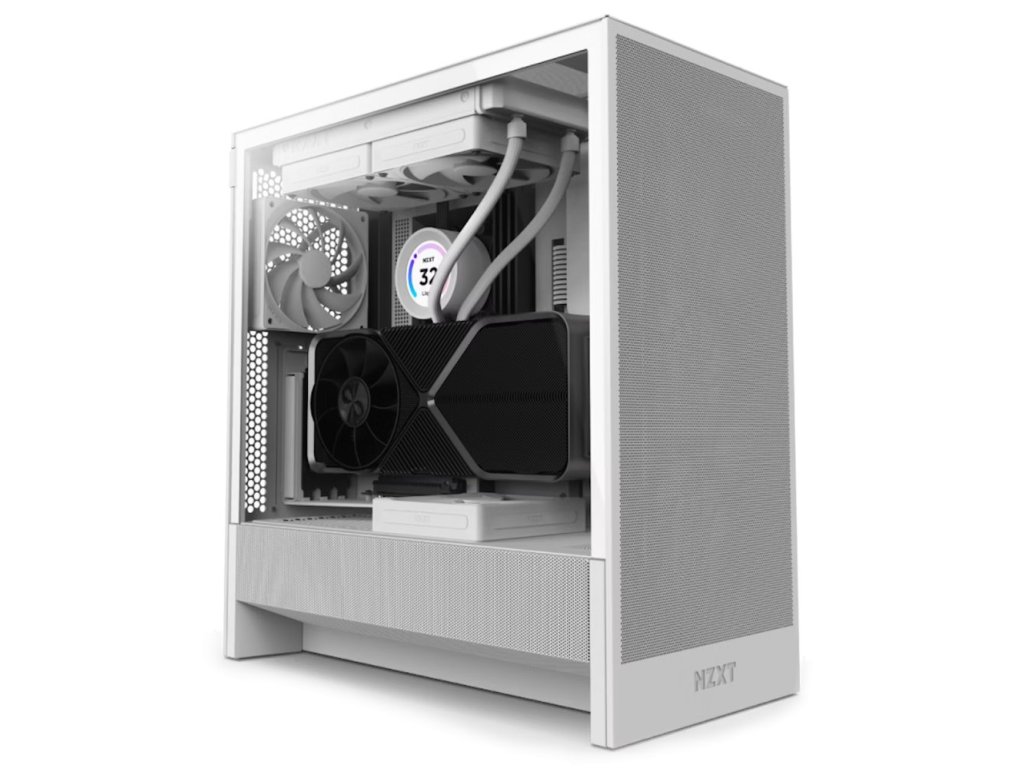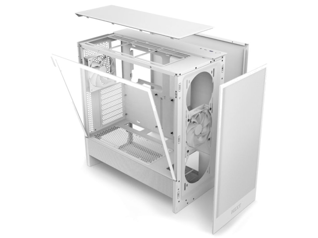 NZXT H5 FlowElegantní počítačová skříň nabízí stylovou prosklenou bočnici, perforovaný panel a prvotřídní kovovou konstrukci. Osazení komponentami je lehké díky systému správy kabeláže, kabely tedy nikde zbytečně nepřekáží. Skříň je osazena dvěma ventilátory o velikosti 120 mm. Potěší také možnost rozšíření o dalších 6 ventilátorů. Samozřejmostí jsou prachové filtry. Důmyslné řešení umožňuje pohodlné umístění až 360 mm dlouhého výměníku vodního chlazení na přední straně. Ve skříni je dostatek prostoru pro chladič CPU do výšky až 170 mm a grafickou kartu o délce až 410 mm. No horním panelu je k dispozici jeden port USB 3.0, jeden port USB-C a kombinovaný port sluchátek a mikrofonu. Skříň je dodávána bez zdroje.