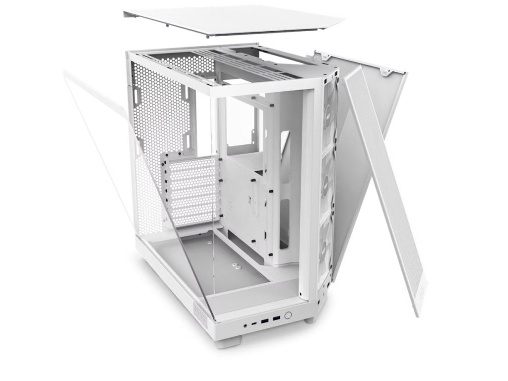NZXT H6 Flow RGBElegantní počítačová skříň nabízí stylovou prosklenou bočnici a čelo, perforovaný panel a prvotřídní kovovou konstrukci. Osazení komponentami je lehké díky systému správy kabeláže, kabely tedy nikde zbytečně nepřekáží. Skříň je osazena třemi 120mm RGB ventilátory. Potěší také možnost rozšíření o dalších šest ventilátorů. Samozřejmostí jsou prachové filtry. Důmyslné řešení umožňuje pohodlné umístění až 360 mm dlouhého výměníku vodního chlazení na horní straně nebo až 120 mm dlouhého výměníku na zadní straně. Ve skříni je dostatek prostoru pro chladič CPU do výšky až 163 mm a grafickou kartu o délce až 365 mm. Na přední straně jsou dva USB 3.0 porty, USB-C port a kombinovaný audio port sluchátek a mikrofonu. Skříň je dodávána bez zdroje.