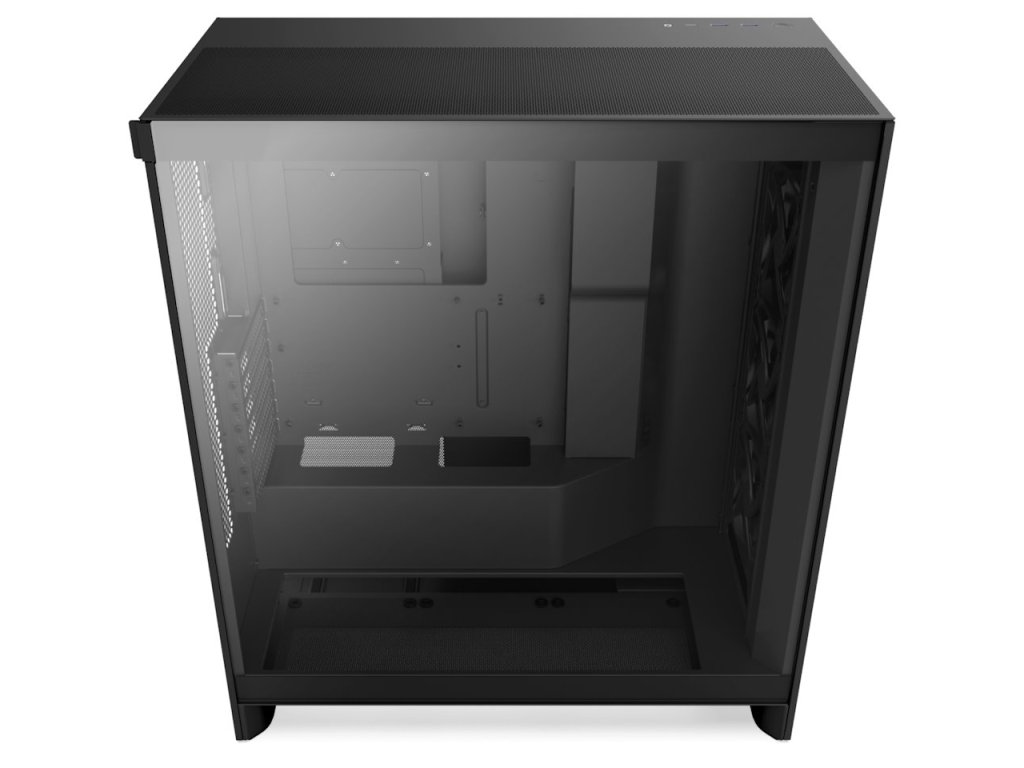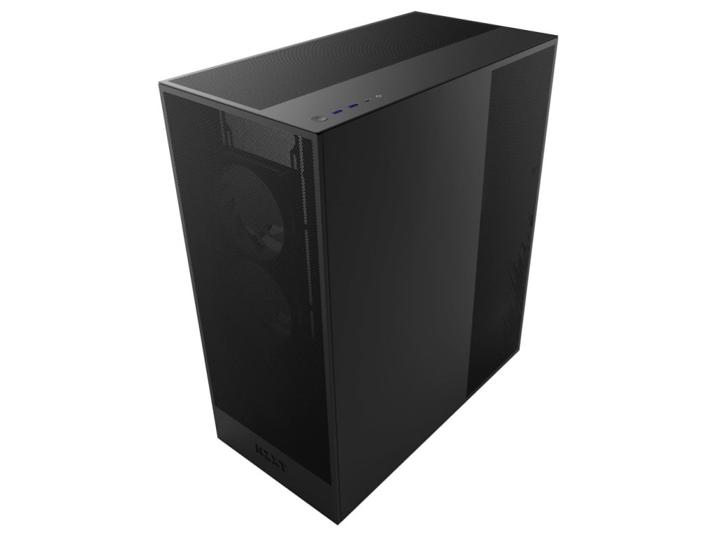 NZXT H7 Flow (2024)Elegantní počítačová skříň nabízí stylovou prosklenou bočnici, perforovaný panel a prvotřídní kovovou konstrukci. Osazení komponentami je lehké díky systému správy kabeláže, kabely tedy nikde zbytečně nepřekáží. Skříň je osazena třemi ventilátory o velikosti 120 mm. Potěší také možnost rozšíření o další čtyři ventilátory. Samozřejmostí jsou prachové filtry. Důmyslné řešení umožňuje pohodlné umístění až 420 mm dlouhého výměníku vodního chlazení na přední straně. Ve skříni je dostatek prostoru pro chladič CPU do výšky až 185 mm a grafickou kartu o délce až 410 mm. Na vrchní straně je 2× USB 3.0 port, 1× USB-C a kombinovaný audio port (sluchátka + mikrofon). Skříň je dodávána bez zdroje.