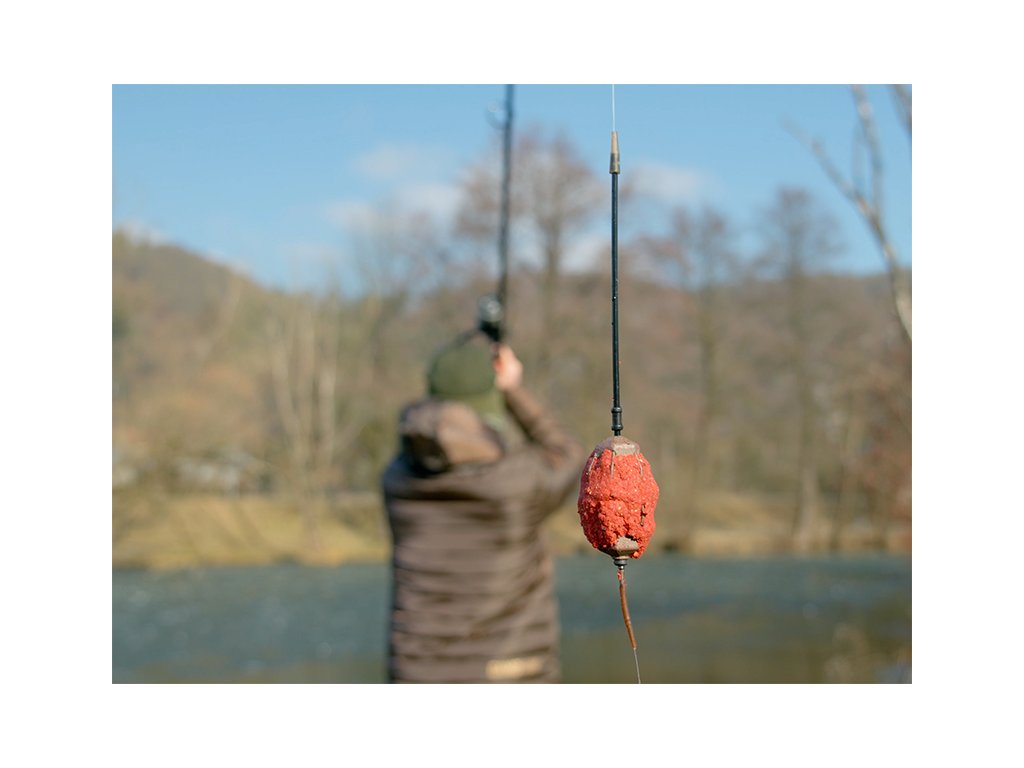 Delphin EazySix je určeno zejména pro rybáře, kteří mají v oblibě lov na položenou s krmítkem. Jeho aerodynamický tvar zaručuje spolehlivé a přesné doručení nástrahy a návnady na vaše lovné místo. Olověné tělo EazySix doplňuje 6 žeber, které dokonale udrží návnadu v krmítku při dopadu na dno. To však není všechno! EazySix disponuje hned několika dalšími vychytávkami, které nejsou standardem u krmítek z podobné kategorie. Jako první bychom zmínili odnímatelnou olověnou část s drážkou pro vlasec na trubičce, která je zajištěna gumovou bužírkou. Jednoduše stáhnete bužírku a bez zbytečného stříhání kmenového vlasce vyměníte olověnou zátěž za jinou, která vám v daných podmínkách vyhovuje. Trubička je kompatibilní s obratlíky vel. 4 z naší nabídky, které do ní dokonale zapadnou a zaručí, že vaše návnada bude poblíž nástrahy. Povrch EazySix je chráněn barvou v přírodních odstínech hnědé s černými frkanci. Tyto barvy dokonale kamuflují krmítko na dně i po rozpadnutí vnadící směsi. PROTECTED DESIGN - Tento produkt byl kompletně navržen designéry značky Delphin. Jeho design a technické řešení jsou natolik unikátní, že je registrován a chráněn na území celé Evropské unie.Doplňkové parametry