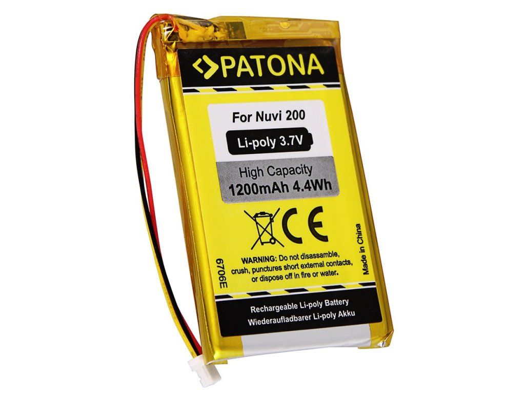 PATONA pro Garmin Nuvi 200 1200 mAhKompatibilní baterie pro GPS navigace Garmin. Baterie se vyznačují vysokou kvalitou, mají integrovanou ochranu proti přetížení a přebití.