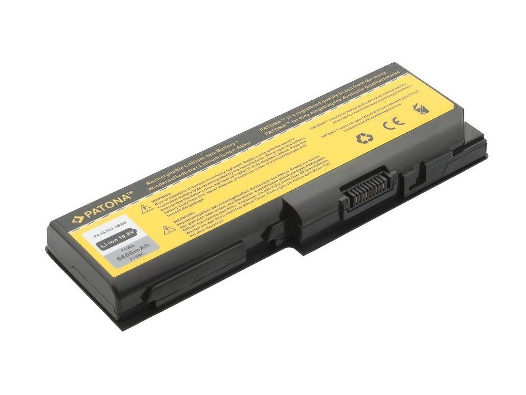 PATONA baterie pro Toshiba 6600 mAhKompatibilní baterie pro notebooky Toshiba. Baterie se vyznačují vysokou kvalitou, mají integrovanou ochranu proti přetížení a přebití. Je potřeba brát v úvahu, že velikost baterie je větší, než rozměry originální baterie standardně dodávané s notebookem a přístroj nemusí jít plnohodnotně otevřít.