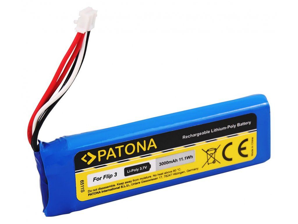PATONA baterie pro JBL Flip 3 3000 mAhKompatibilní baterie pro reproduktory JBL. Všechny baterie PATONA jsou vyráběny podle nejvyšších evropských standardů kvality a vyznačují se extrémní životností. Baterie mají všechny elektronické bezpečnostní prvky a mohou být také nabíjeny z původního zdroje.