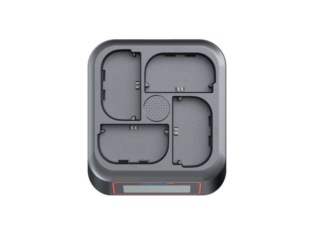 - Současné nabíjení až 4 baterií Canon LP-E6/LP-E6N/LP-E6P/LP-E6NH najednou