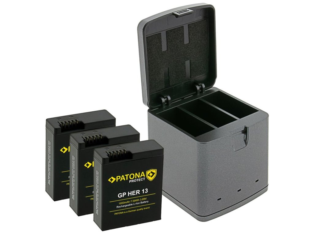 PATONA nabíječka pro digitální kameru Triple GoPro Hero 13, USB-C + 3x baterie 1950mAh Enduro