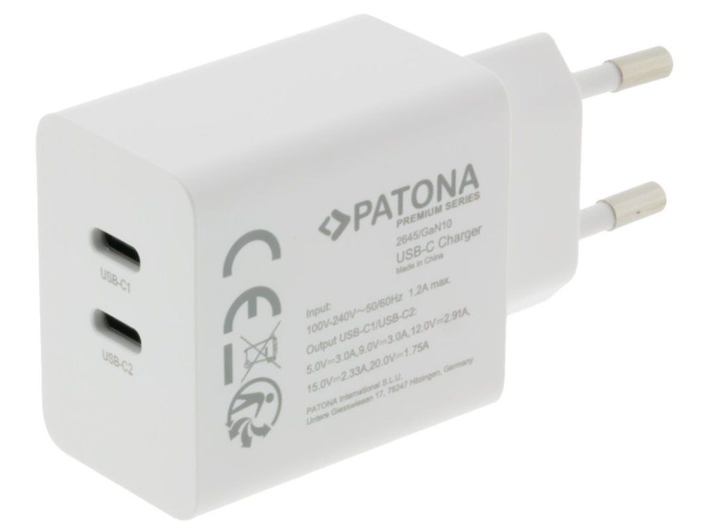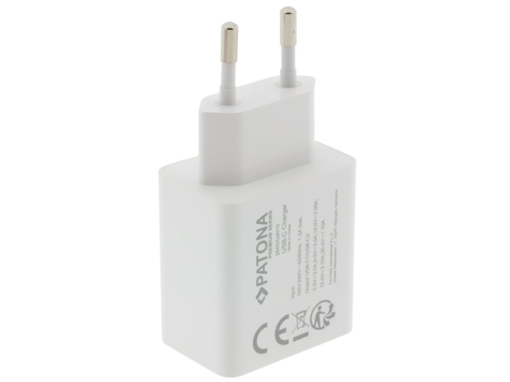 PATONA napájecí adaptér PD 35 WNapájecí adaptér s výkonem 35 W pro tablety a smartphony. Pro nabíjení zařízení jsou k dispozici dva konektory USB-C s podporou Power Delivery 3.0. Nabíječka využívá nejmodernější GaN technologii namísto tradičních křemíkových polovodičů, což umožňuje rychlejší nabíjení s vyšší účinností. Samozřejmostí je ochrana proti přehřátí a přepětí.
