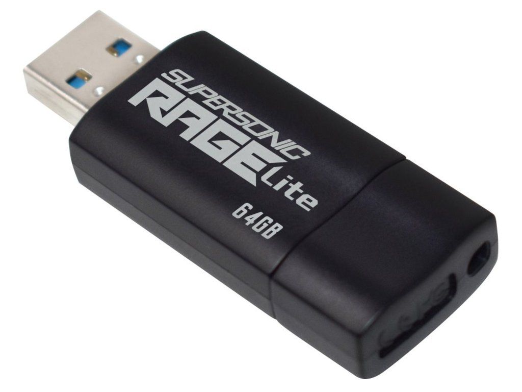 Patriot Supersonic Rage Lite 64 GBUSB flash disk s rozhraním USB 3.2 Gen1 a velikostí paměti 64 GB. Disponuje praktickým zasouvacím a vysouvacím mechanismem, který chrání před nechtěným poškozením.
