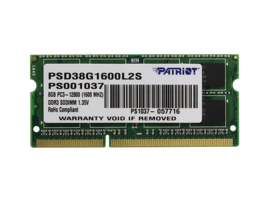 Patriot 8 GB DDR3 SO-DIMM 1600 MHzOperační paměť typu DDR3 o velikosti 8 GB. Pracuje na frekvenci 1600 MHz.