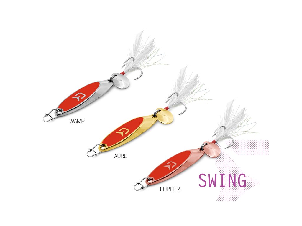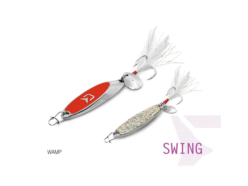 Plandavky série Delphin SWING jsou ideálními umělými nástrahami pro lov větších dravých ryb. Již z názvu vyplývá, že pohyb plandavky bude klouzavě tančící a umožní i lov těsně pod hladinou, což ocení hlavně rybáři, kteří se rádi zaměřují na lov bolena a štiky. Jejich tělo je vyrobeno ze zinkové slitiny. Pro zatraktivnění nástrahy je mezi tělem nástrahy a hákem umístěn list rotačky, který zvyšuje atraktivitu nástrahy. Jsou vybaveny kvalitním a pevným trojháčkem se speciální úpravou hrotů Cutting point, který zajistí snazší proniknutí háku i do té nejtvrdší tlamy našich dravců. Také jsou vybaveny i FAST LOCK SNAP pro zjednodušené měnění nástrah. Kromě větších dravců jimi nepohrdnou ani menší dravé ryby na jezerech či vodních tocích. Plandavky SWING mají plochý tvar těla s úkosem, který dokonale vydráždí každého dravce. Technické parametry: Model: SWING Hmotnost: 15g Délka těla plandavky: 5,7cmDoplňkové parametry