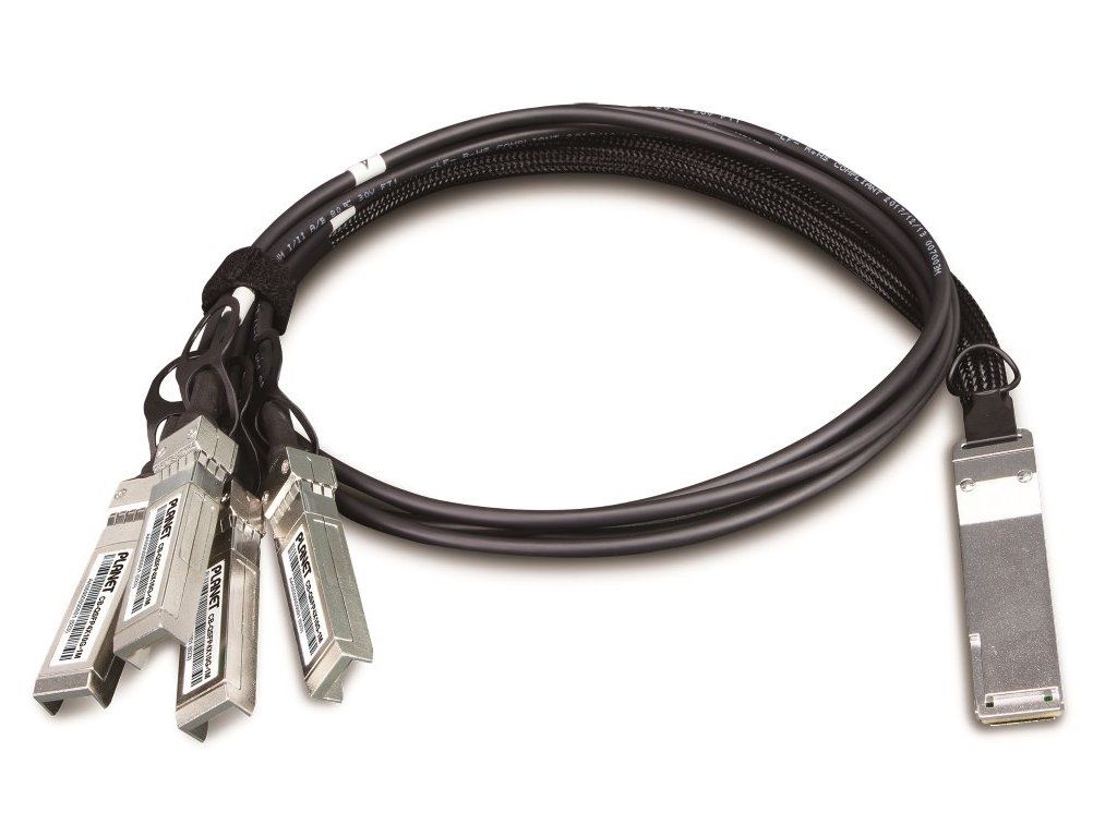 Planet CB-QSFP4X10G-1M, metalický spojovací kabel QSFP+ 40Gb/s na 4x SFP+ 10Gb, délka 1m
