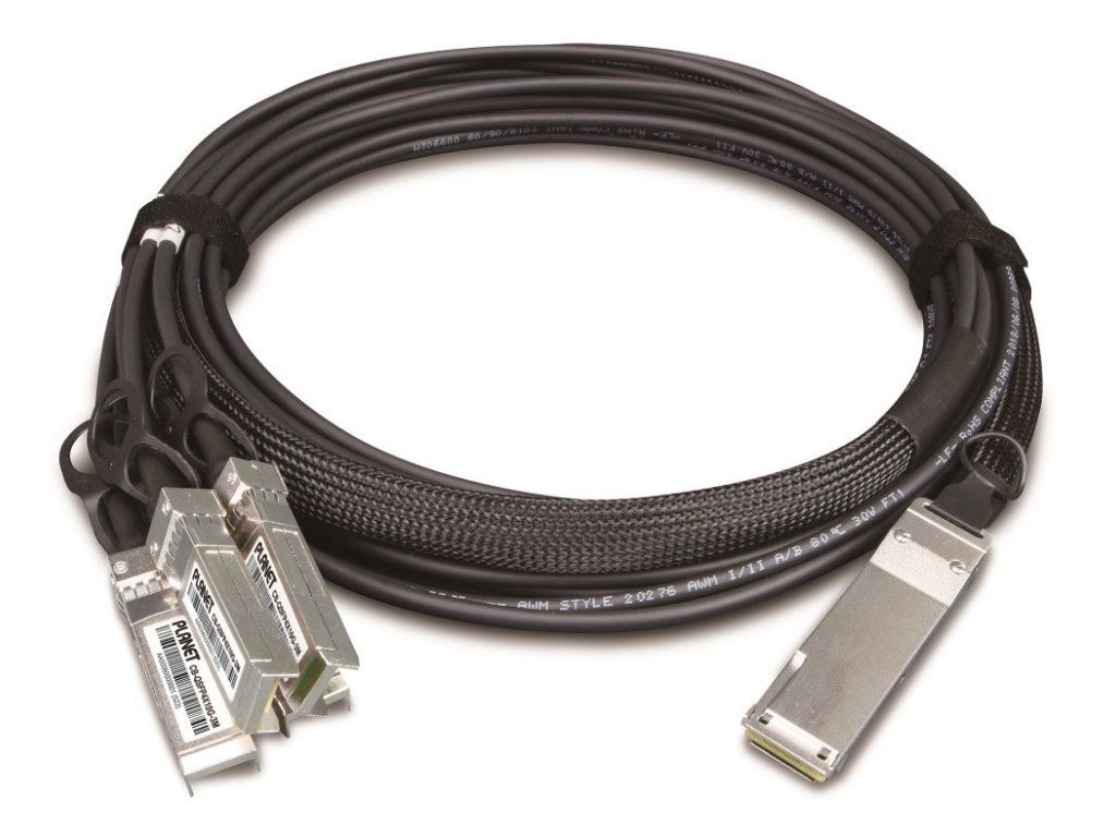 Planet CB-QSFP4X10G-5M, metalický spojovací kabel QSFP+ 40Gb/s na 4x SFP+ 10Gb, délka 5m