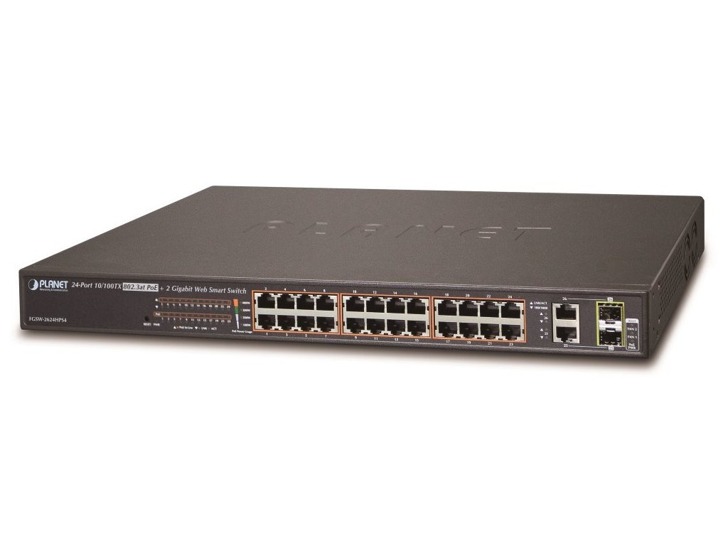 Planet FGSW-2624HPS4 L2 switch, 24x100Mb, 2x1Gb SFP, 24x PoE 802.3at 420W