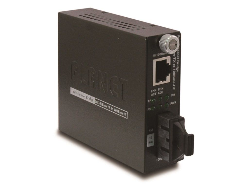 PLANET FST-802S15Fast Ethernet konvertor/přepínač 10/100Base-TX-100Base-FX (SC) 15km, full duplex, singlemode. Full duplex, bridge, auto-MDI/MDX. Při samostatném užití DIP-switche pro nastavení auto/force speed, full/half, LLCF, LLR.