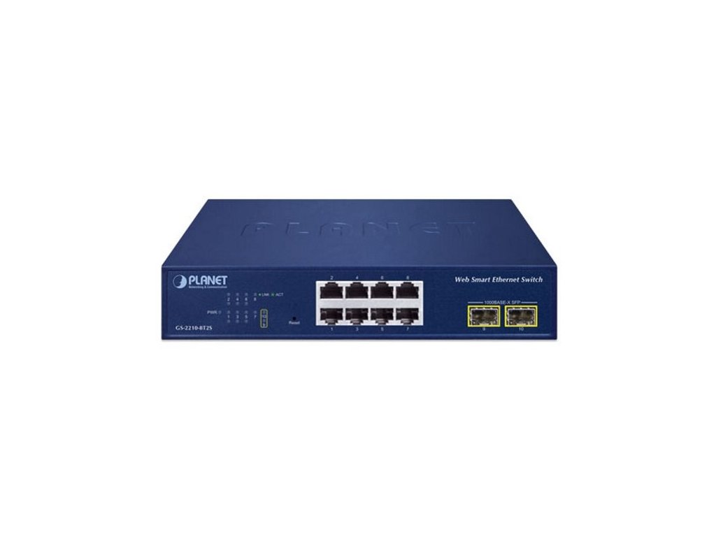 PLANET GS-2210-8T2SSpravovatelný switch nabízející 8 portů 10/100/1000 Base-T a 2 SFP sloty 100/1000 Base-X.