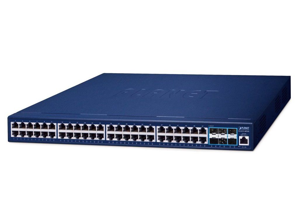 PLANET GS-6311-48T6XŠpičkový řízený multiportový 10 Gb/s switch s L3/L2 přepínáním a bezpečnostními funkcemi.