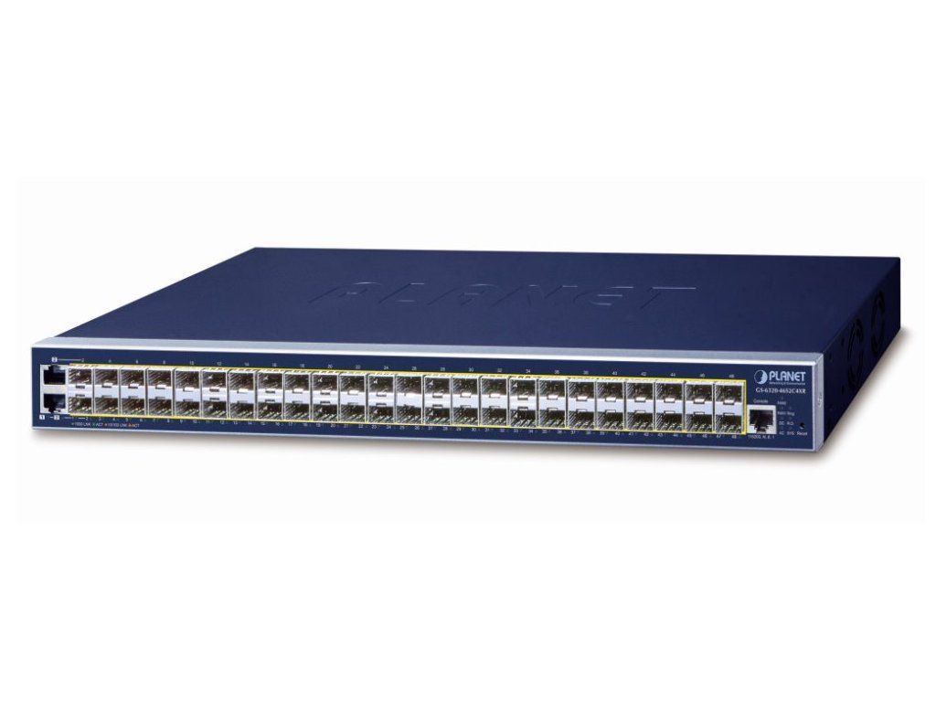 Porty: 2 x RJ-45 10/100/1000BASE-T, 46 x 100/1000X SFP, 4 x 10GBASE-LR/SR SFP+, 1 x RJ-45 sériový port konzole