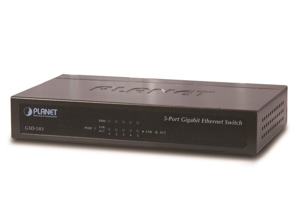 PLANET GSD-5035portový Gigabitový desktopový přepínač. Autodetekce rychlosti a typu kabelu.