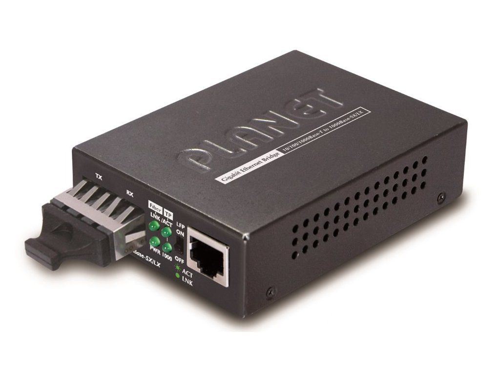 PLANET GT-802SGigabit Ethernet konvertor/přepínač 1000Base-T/1000Base-LX (SC konektor), singlemode. Bridge, auto-MDI/MDX. Konektory SC.