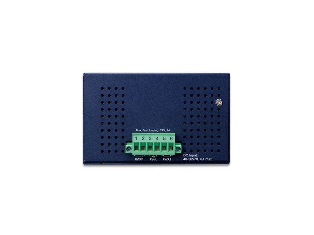 PLANET IGS-1020PTFPrůmyslový L2 PoE switch nabízí osm RJ-45 10/100/1000Base-T portů s podporou PoE+ 802.3af/at napájení a dva SFP sloty (1000Base-SX/LX/BX) kompatibilní s 100Base-FX, standard/extend mód (porty 5 až 8).