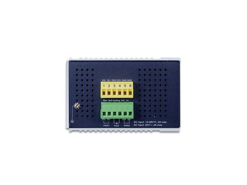 Duální napájení v rozsahu DC 12-48V / AC 24V, krytí IP30, hliníková skříň, pracovní teplota -40~75°C. Přepěťová ochrana ESD do 6kV. Montáž na DIN lištu nebo přímo na zeď.