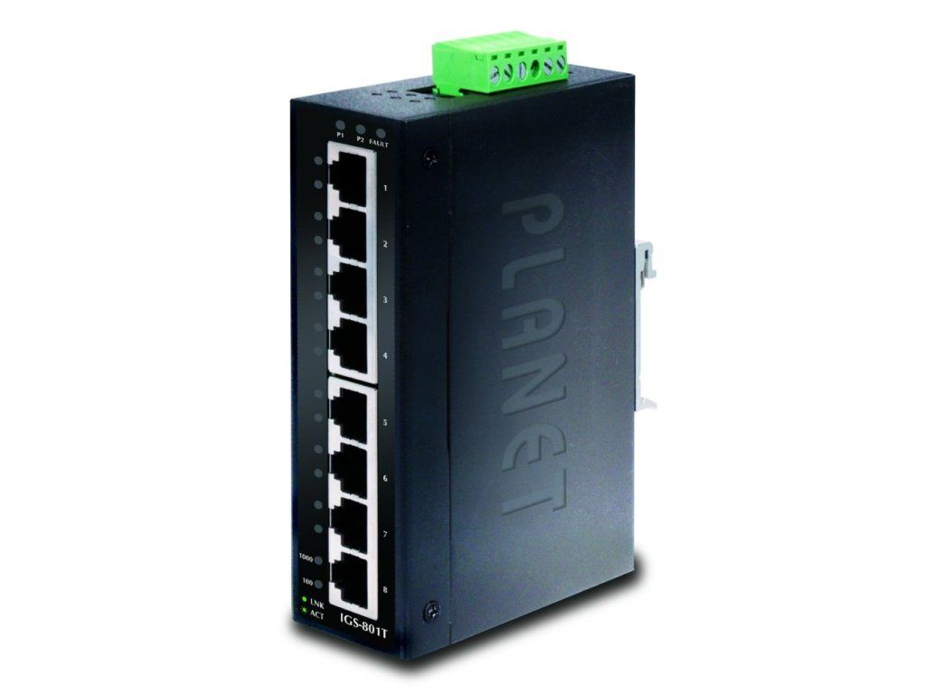 PLANET IGS-801T8portový přepínač a konvertor pro průmyslové aplikace. 8 portů 1000Base-T.