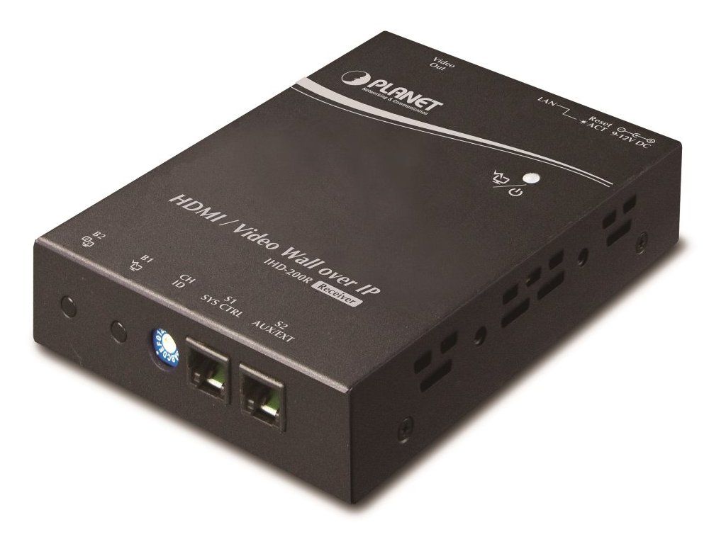Přijímač distribuce pro extender nebo video stěnu přes síť LAN (ethernet), podpora rozlišení HD až WUXGA. Přenos 16 nezávislých kanálů nebo 4 simultánních obrazů. Podpora funkce EDID. Spojení bod-bod nebo multicast. Web management, VESA montáž. Řešení pro IP distribuci video prezentací v prostředí LAN pro účely zobrazení na panelech a video stěnách. Jednotky přenosu podporují několik režimů od spojení vysílač-přijímač po multicast spojení bod vysílač-přijímače v režimech zobrazení pro jednotlivé monitory nebo jako video stěna. Video obraz lze zabezpečit proti zcizení obsahu metodou EDID, lze řídit kvalitu přenosu a vyhlazení videa pro kvalitní výstup.