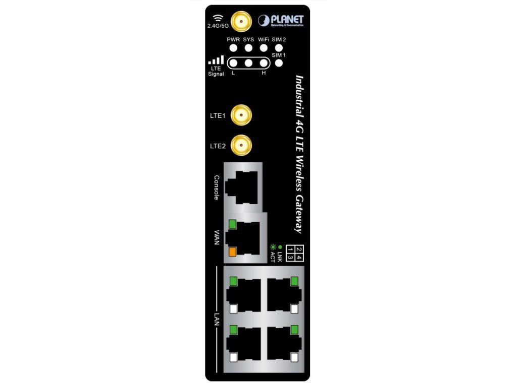 Planet IoT/M2M průmyslová brána, 1xWAN+3xLAN 1Gb, 2xLTE, WiFi ac, 3xCOM, I/O, DIN, IP30, -35/+75C, 9-36VDC
