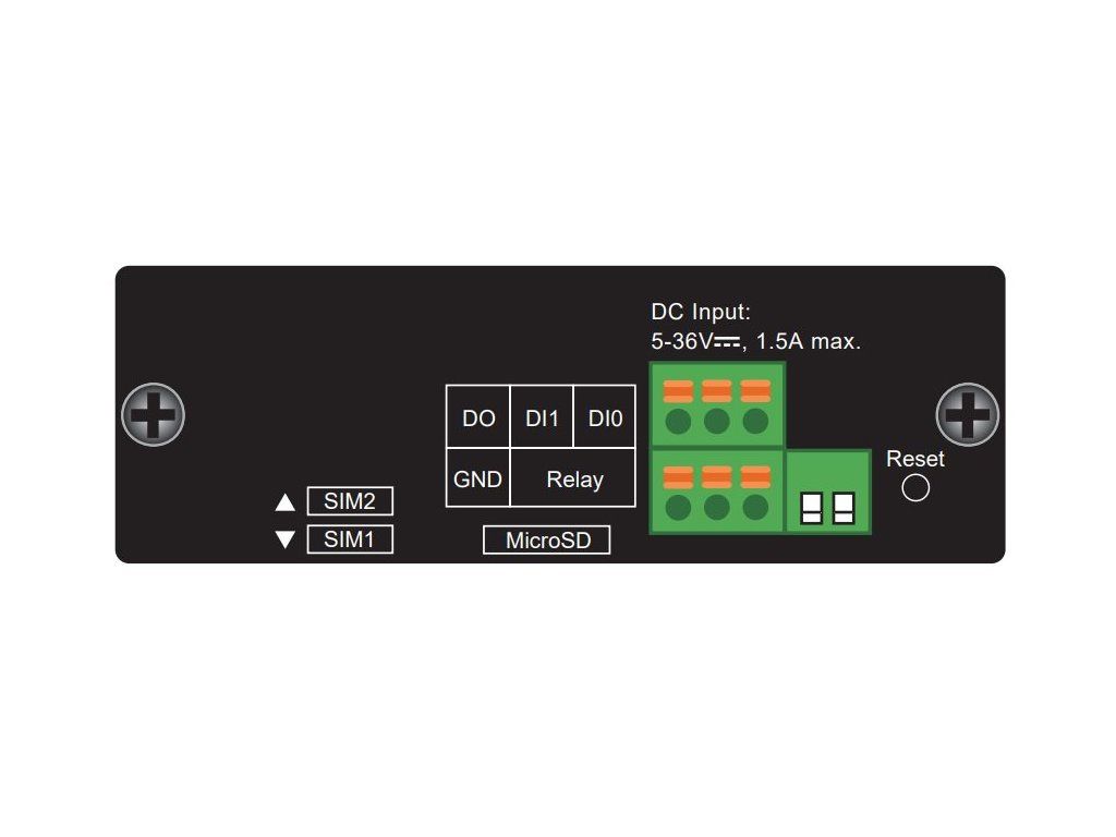 Porty: 4 x RJ-45 LAN 10/100/1000Base-T, 1 x RJ-45 WAN 10/100/1000Base-T, 1 x RJ-45 (DB9), 2 x digitální vstup, 1 x digitální výstup (alarm), 2 x SIM slot, 2 x SMA, 1 x RP-SMA-J, 1 x microSD slot