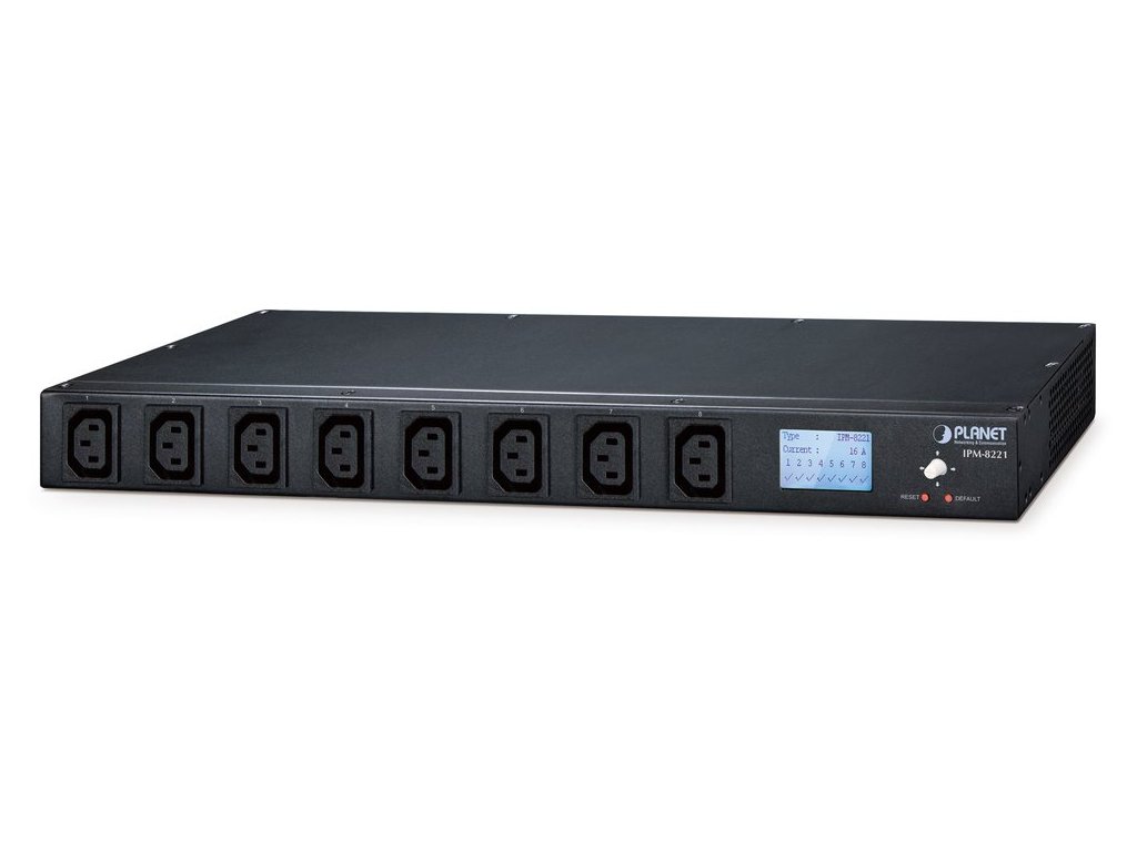 Planet IPM-8221, IP ovládání 8x zásuvek 240V/10A, 1U Rack/desktop, LED+displej, port pro senzor
