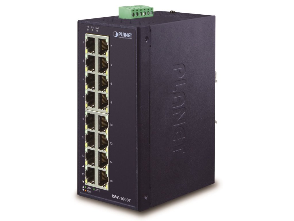 PLANET ISW-1600T16 portový přepínač pro průmyslové aplikace. 16x 10/100Base-TX.
