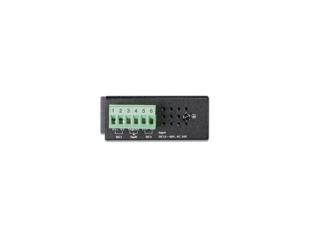 PLANET ISW-500T5portový 100Mbitový přepínač a konvertor pro průmyslové aplikace. Možnost redundantního napájení DC 12–48 V / AC 24 V, příkon <2 W.