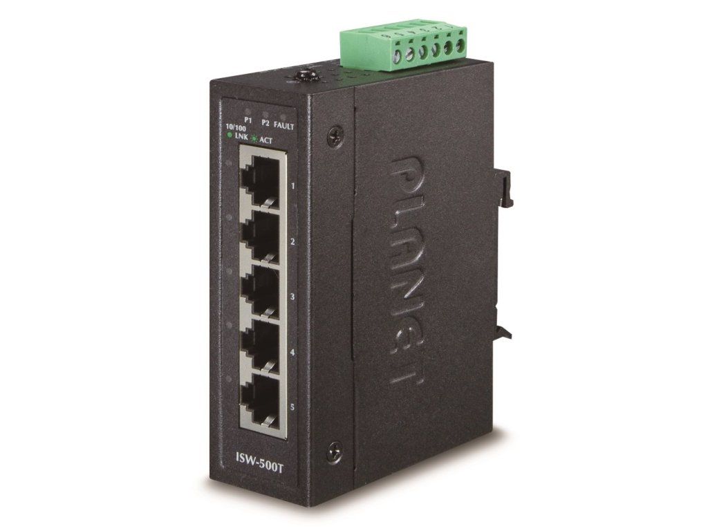 Planet ISW-500T, 5x 10/100Base-TX, ESD, DIN, IP30, -40~75°C