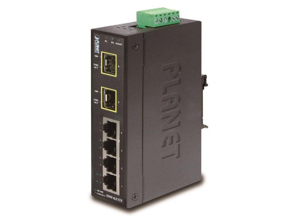 Planet ISW-621TF, 4x 10/100Base-TX+ 2x 100FX SFP, DIN, IP30, -40 až 75 st.C