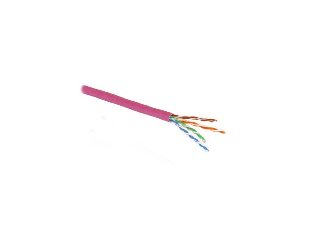 PLANET UTP Cat5e 305mKabel UTP-drát 4 páry drát, CAT 5e, LS0H, balení na špulce 305m. Barva fialová RAL 4003. Kabel pro realizací sítí Fast Ethernet (IEEE 802.3u), Gigabit Ethernet (IEEE 802.3ab), Ethernet (IEEE 802.3), 100 Vg-AnyLAN (IEEE 802.12), Token Ring (IEEE 802.5), TP-PMD (ANSI X3T9.5), 100 Mbps CDDI, ATM 155. Díky bezpečné izolaci LS0H se při případném požáru z kabelu neuvolňují jedovaté plyny jako u běžného kabelu s izolací PVC.
