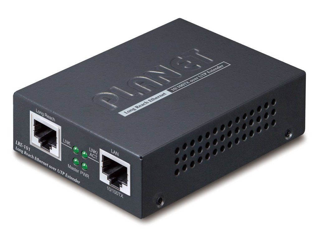 PLANET LRE-101Ethernet extender k prodloužení segmentu Ethernet ze 100 m na vzdálenost až 800 m po UTP (až 1200 m pro RJ-11 při rychlosti 11/6 Mbps). Určen především pro dálkový Ethernet (LRE), které poskytuje rychlou náhradu a bezproblémové řešení přechodu ze stávajícího analogového systému na plně digitální systém.