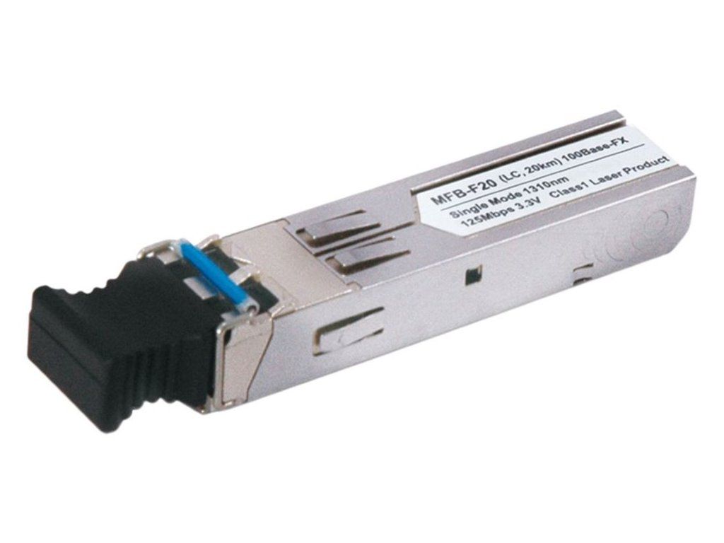 PLANET MFB-F20Fast Ethernetový modul formátu SFP, 100Base-FX, duplexní LC konektor, singlemode. Dosah 20km na single mode vlákně, 1310 nm. Podpora DDM.