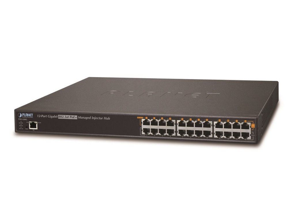 Planet POE-1200G(v2) PoE injektor 12x 1Gb, 802.3at 30/220W, PING watchdog+scheduler